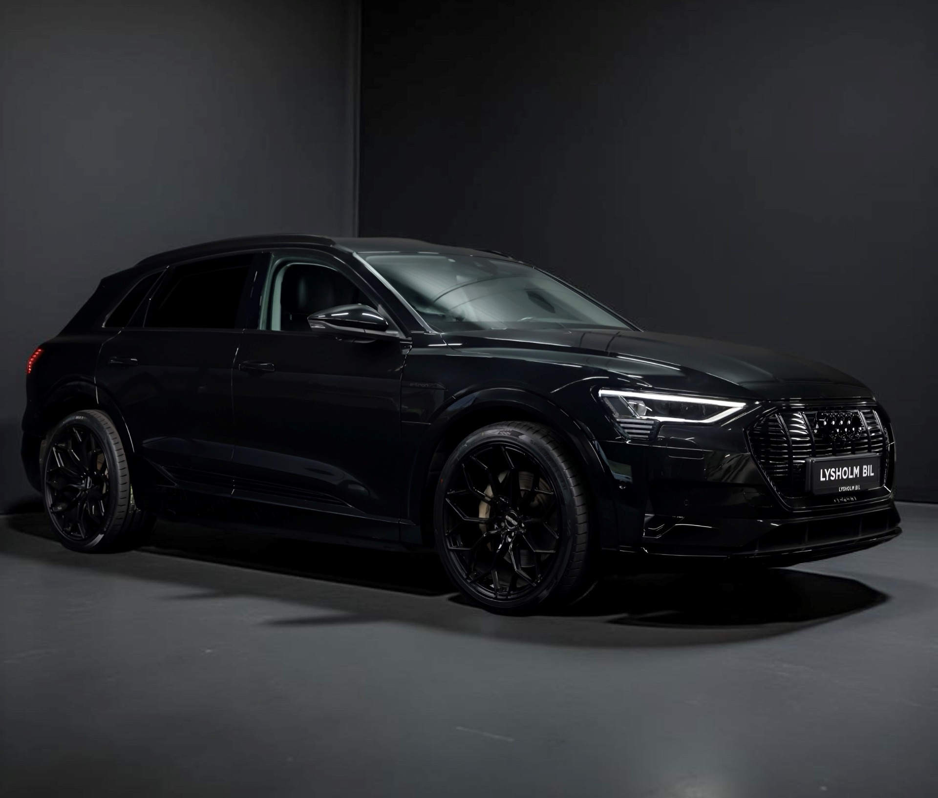 Audi e-tron 55 S-Line Lysholm Bil has fitted this Audi e-tron 55 S-Line with 22x10.5 ET32 Forged Titan wheels in Gloss Black.